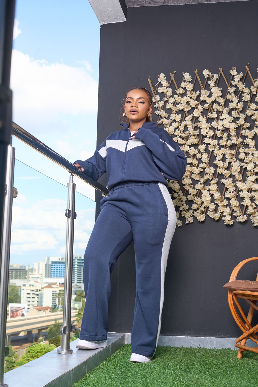 Introducing the Zip-Up Fleece Set – Navy & Gray in a classic Navy with contrast Gray accents. This full-zip jacket and wide-leg pant set is designed for maximum impact and versatility. The bold color blocking and sleek cut make it perfect for gym commutes, casual sports events, or a stylish travel ensemble. Key Features: Full zip-up jacket, contrast color panels, relaxed wide-leg fit. Iconic sportswear aesthetic for Plainchic style.